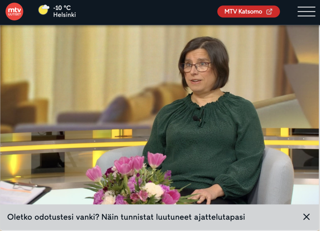 Puhuin murehtimisesta ja sen katkaisemisesta Yle Radio 1:n iltapäivä -ohjelmassa. Keskustelimme toimittaja Sari Valton kanssa siitä, miksi mieli jää helposti pyörittämään mahdollisia tulevaisuuden uhkia ja miksi murehtiminen voi tuntua vaikeasti hallittavalta. Haastattelussa pohdimme myös sitä, milloin huolista puhuminen auttaa ja milloin ajatukset alkavat kiertää kehää niin, että ne alkavatkin lisätä ahdistusta. Haastattelun voi kuunnella Yle […]